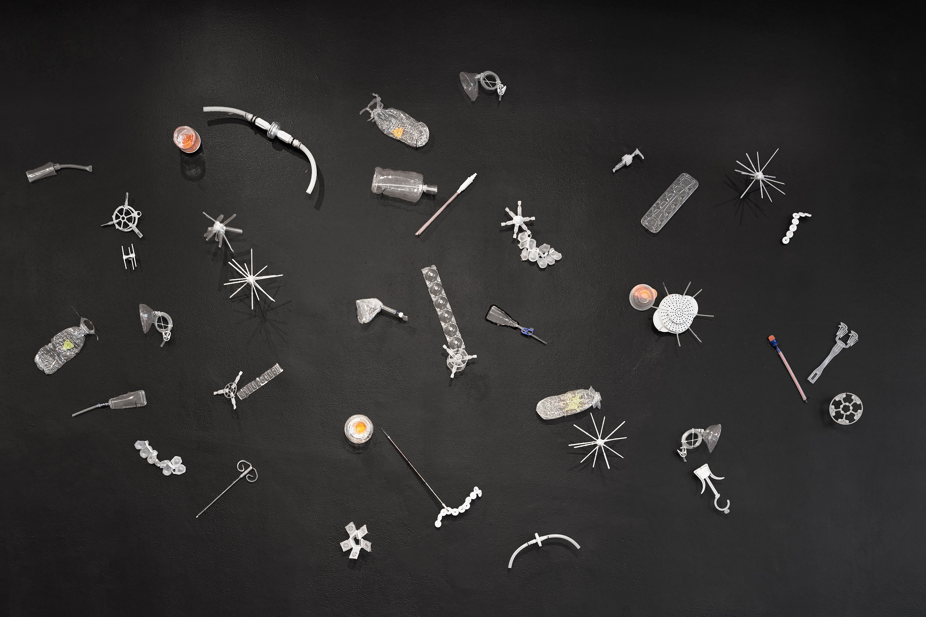 Plankton is inspired by the similarities in the shapes of some discarded plastics and marine organisms. It beckons one to consider the scale of plastic pollution while forcing contemplation of usually unseen microscopic creatures essential to the food chain.